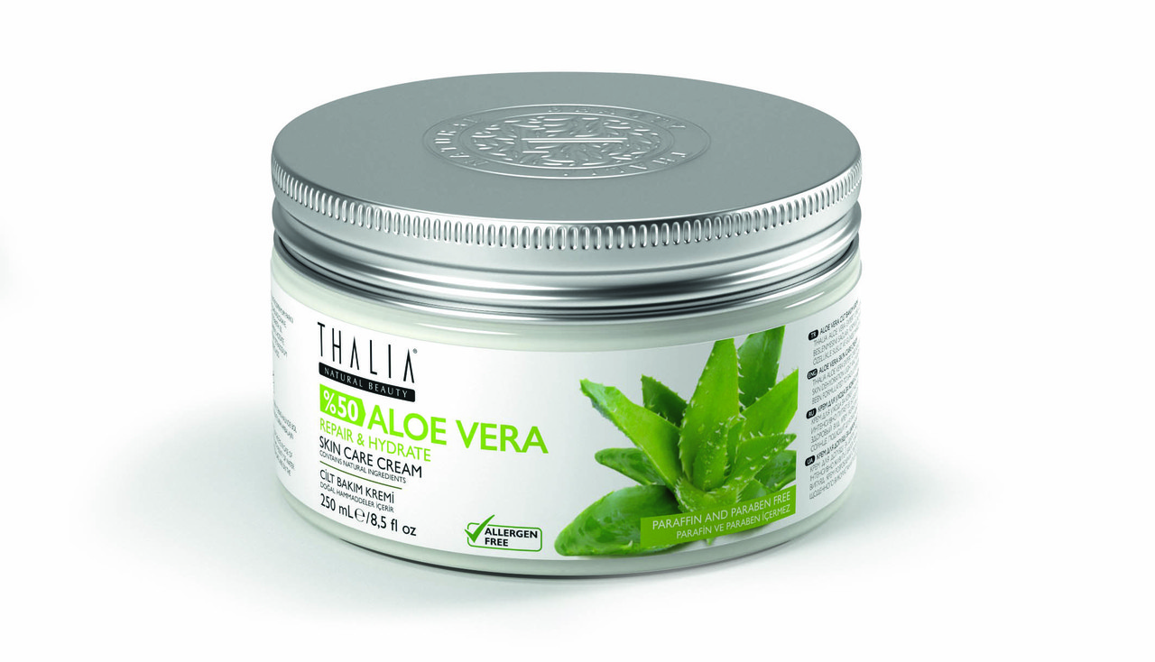 Крем для догляду за шкірою обличчя та тіла містить 50% соку алое віра і цінні масла, завдяки чому запобігає сухості шкіри та інтенсивно живить її. Багата поживними речовинами легка зволожуюча формула крему надає шкірі м'якості та здорового вигляду. Крем розроблено спеціально для догляду за зневодненою шкірою, а також за шкірою після тривалого перебування на сонці. Підходить для щоденного використання та догляду за шкірою. Не містить парафінових масел і парабенів. Не містить шкідливих для здоров’я речовин.